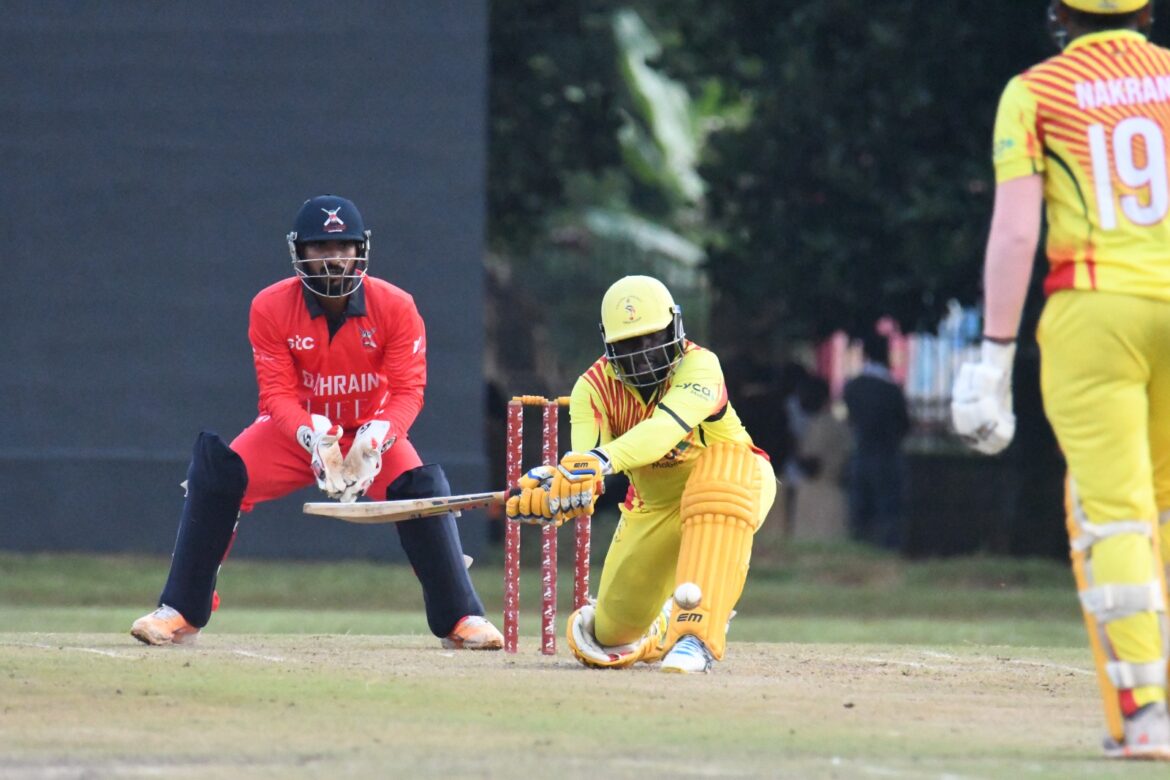 After winning the toss, new Uganda captain Riazat Ali Shah chose to bowl first on a damp and tricky Jinja pitch. Bahrain’s top three batters—Asif Ali, Imran Javed Anwar, and Umer Imtiaz—provided a solid foundation, combining to post 97/5.