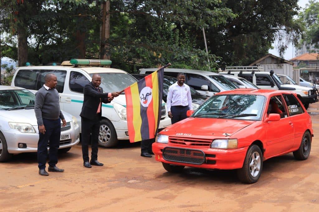 The national flag was handed to leading driver Duncan Mubiru, popularly known as “Kikankane,” by NCS Assistant General Secretary (Technical) Milton Chebet.