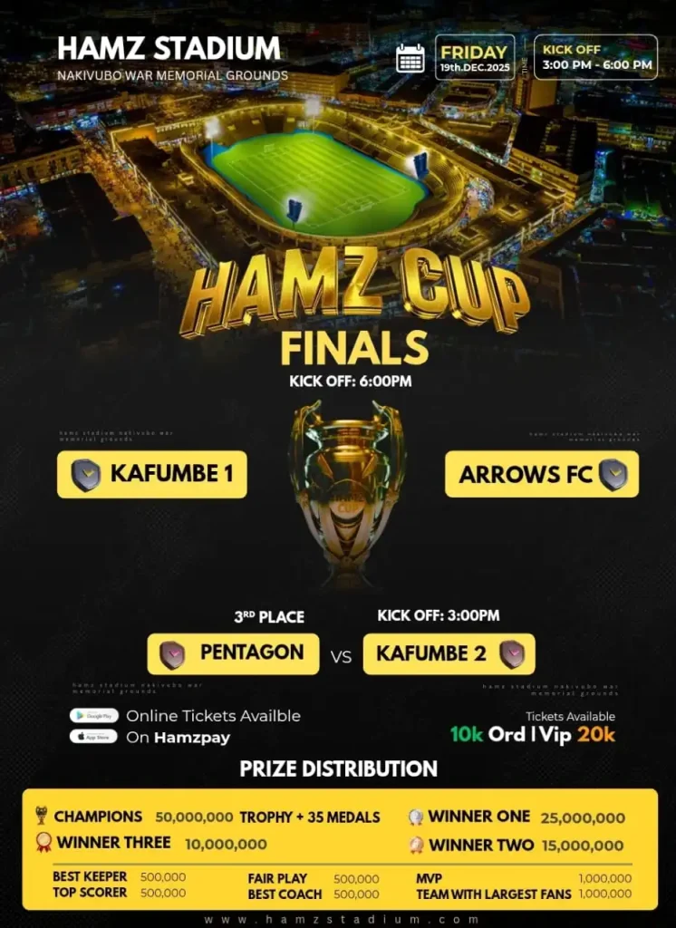 Vying for a big cash prize, everything is set for the HAMZ Cup final between Kafumbe 1 and Arrows Arcade on December 19 at HAMZ Stadium Nakivubo.