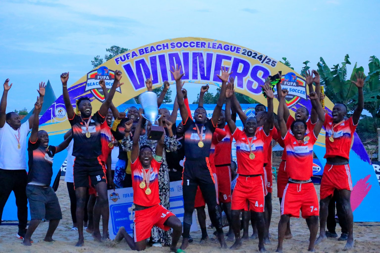 Kampala City Beach Soccer Club made history after lifting their first-ever FUFA Beach Soccer League title with a 2–0 win over Mutoola BSC in a thrilling final at Bambo Gardens Beach Soccer Arena.