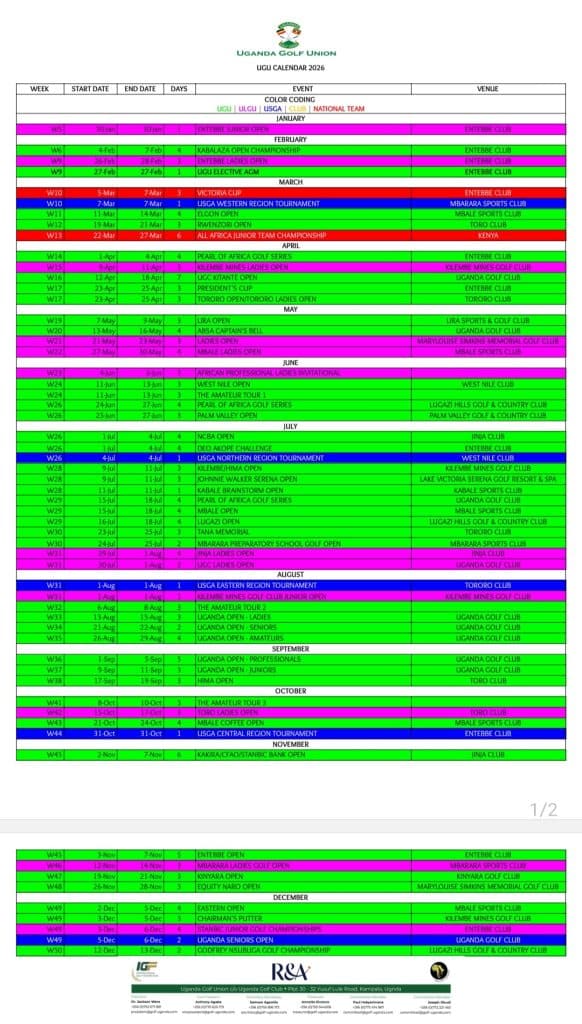 The Uganda Golf Union (UGU) has released its 2026 golf season calendar, with a jam-packed year of tournaments across the country headlined by the highly-anticipated return of the prestigious Uganda Golf Open championship series to Uganda Golf Club in Kampala.