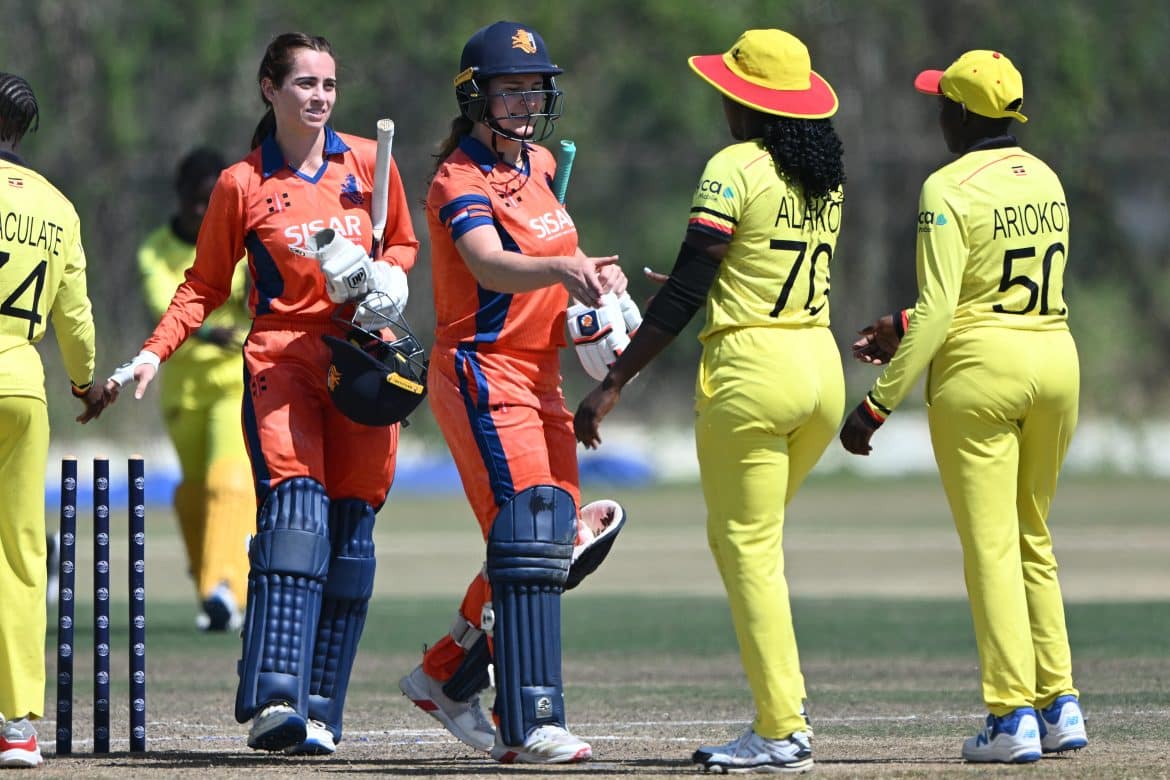 Babette de Leede (17) and the in-form Sterre Kallis (32) guided the chase with ease, keeping Uganda under pressure throughout.
